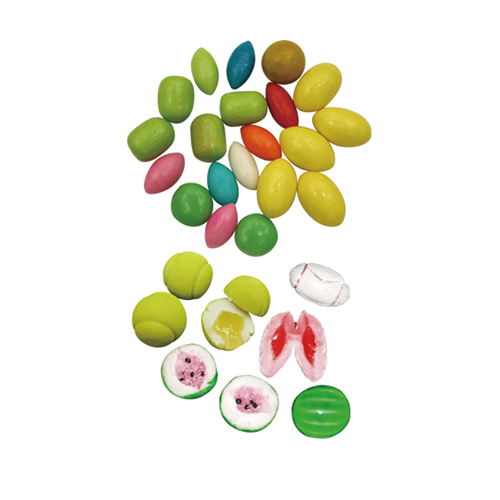 適用于各種形狀的奶糖、泡泡糖、硬糖的成形制作,可生產(chǎn)出如球形、草莓形、方形、橄欖形、圓柱形等空心、夾心、夾漿的糖果。